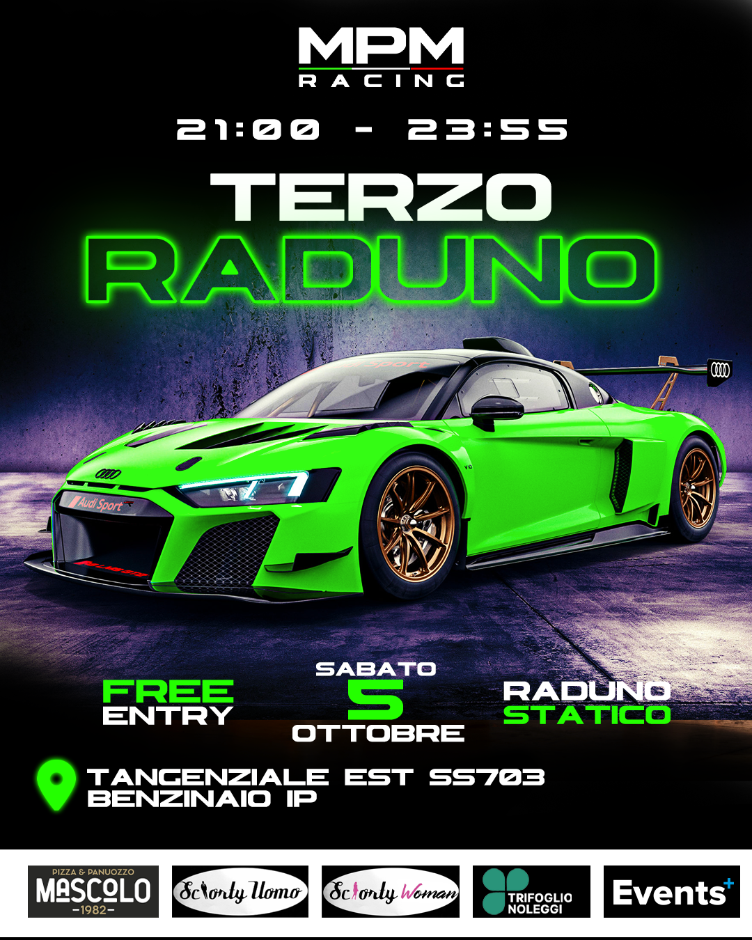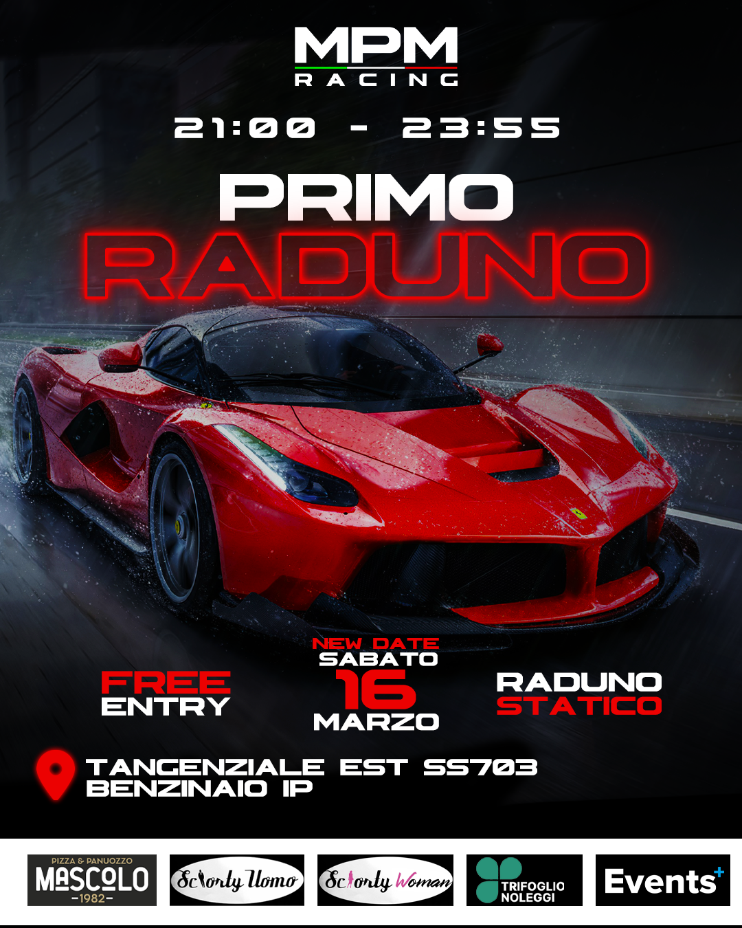 Il Primo Raduno di MPM Racing è un'opportunità unica per gli appassionati dell'automobilismo di incontrarsi e condividere la loro passione per le quattro ruote.È un'occasione per ammirare da vicino vetture mozzafiato, scambiare esperienze e connettersi con altri appassionati. Unisciti a noi per una giornata di divertimento, esposizioni, e appassionanti discussioni sul mondo delle corse. Non perdere l'occasione di essere parte di questo evento memorabile!.